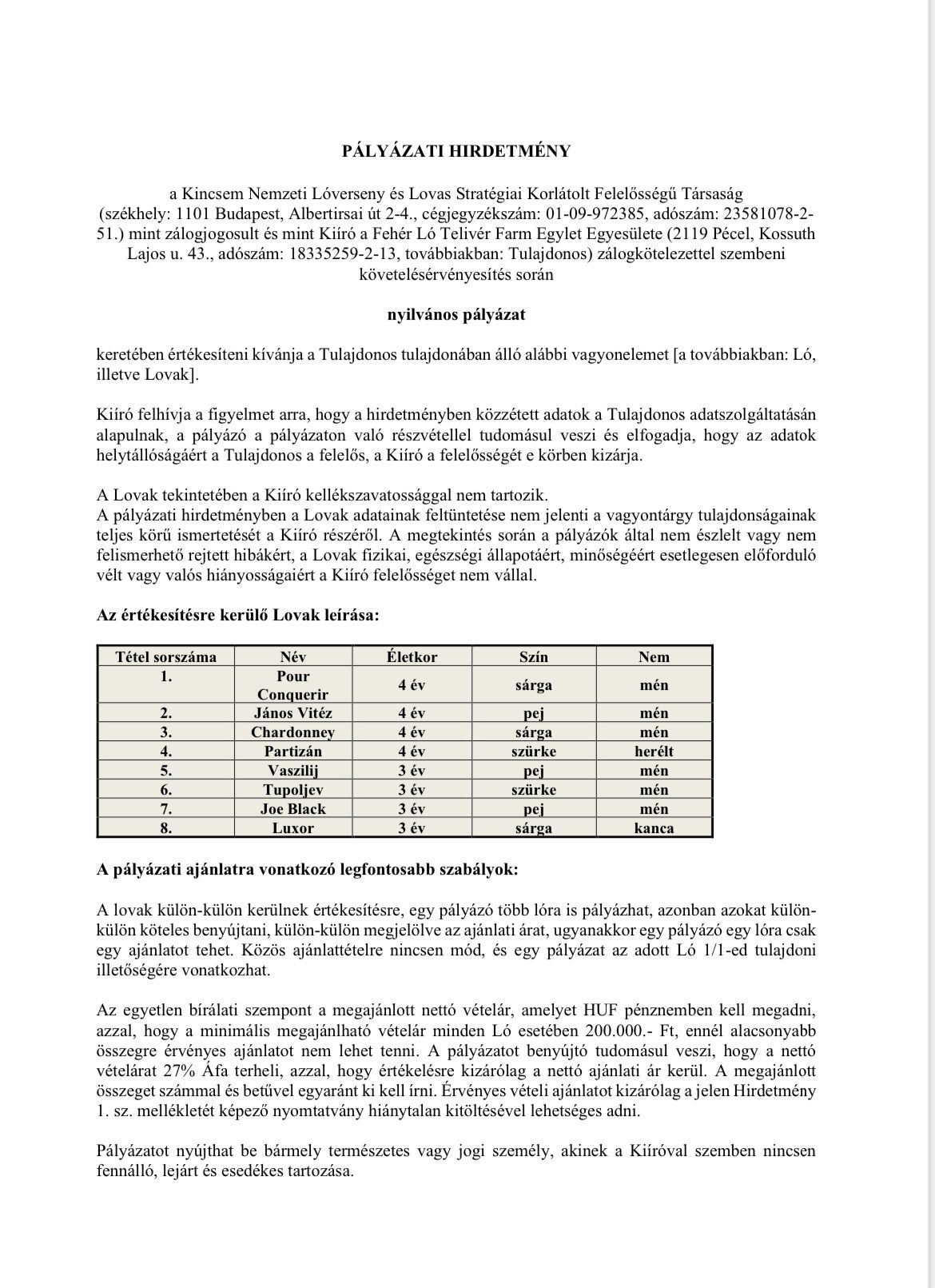Pályázati hirdetmény