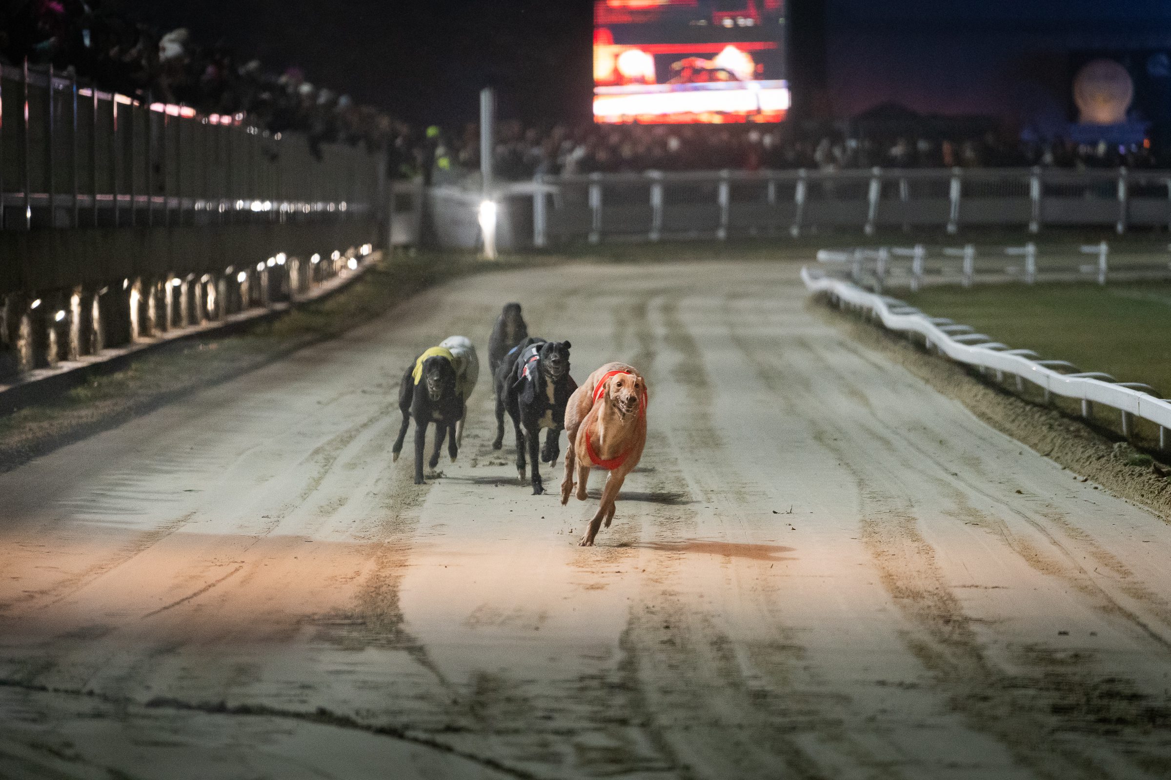 In 2015, official greyhound races were reintroduced in Kincsem Park. The races are exclusively open for the English greyhound breed. The field consists of maximum six dogs of which the first past the post is the winner. Greyhounds race from the age of 15 months. The most prestigious race is the Hungarian Greyhound Derby that is run over 400 metres on either the first or second Saturday of July every year.