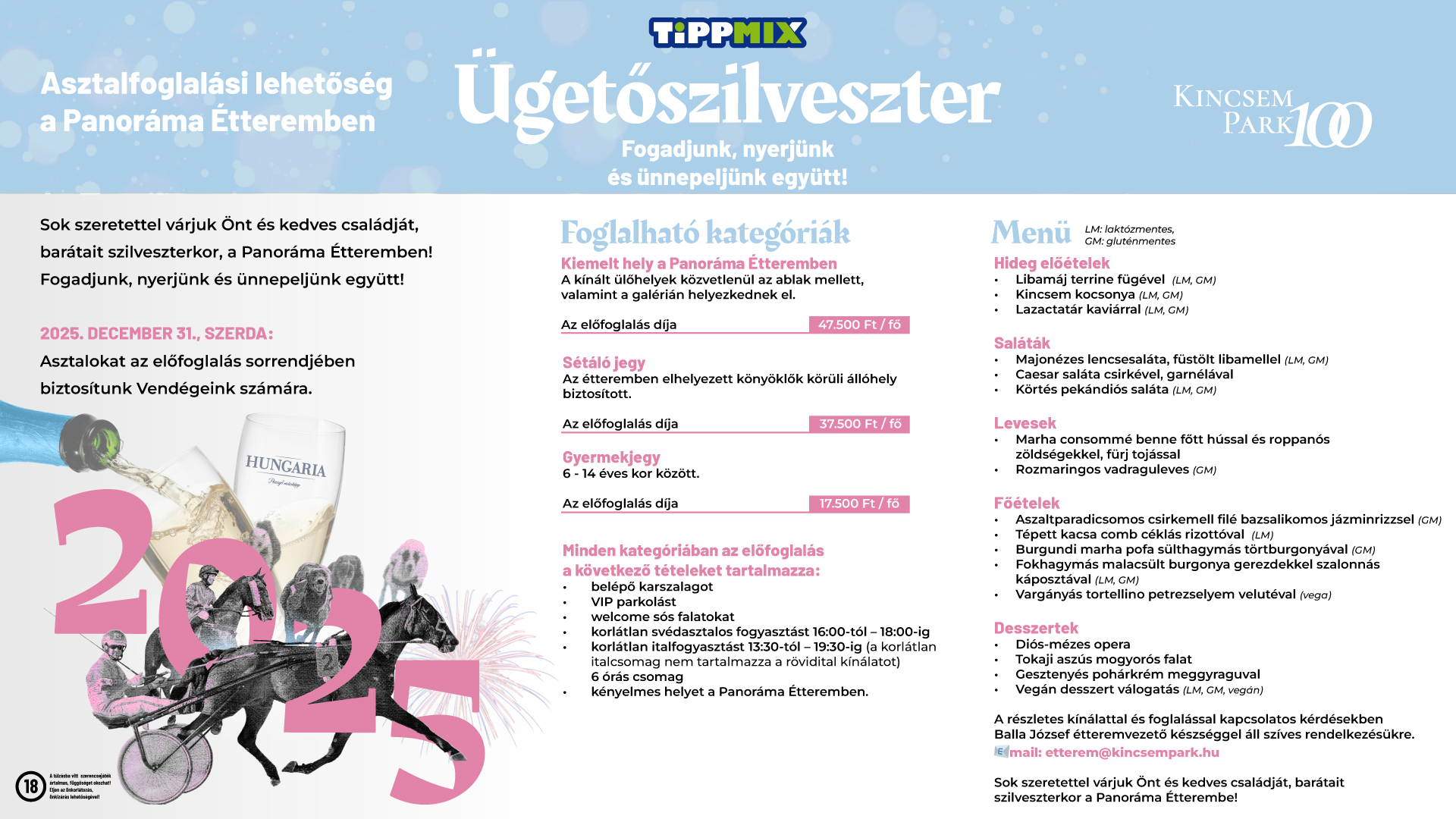 December 31-én újra benépesül a Kincsem Park, Budapest egyetlen lóversenypályája, ahol több mint negyed évszázada az ország legnagyobb szabadtéri óévbúcsúztató sporteseménye vár!