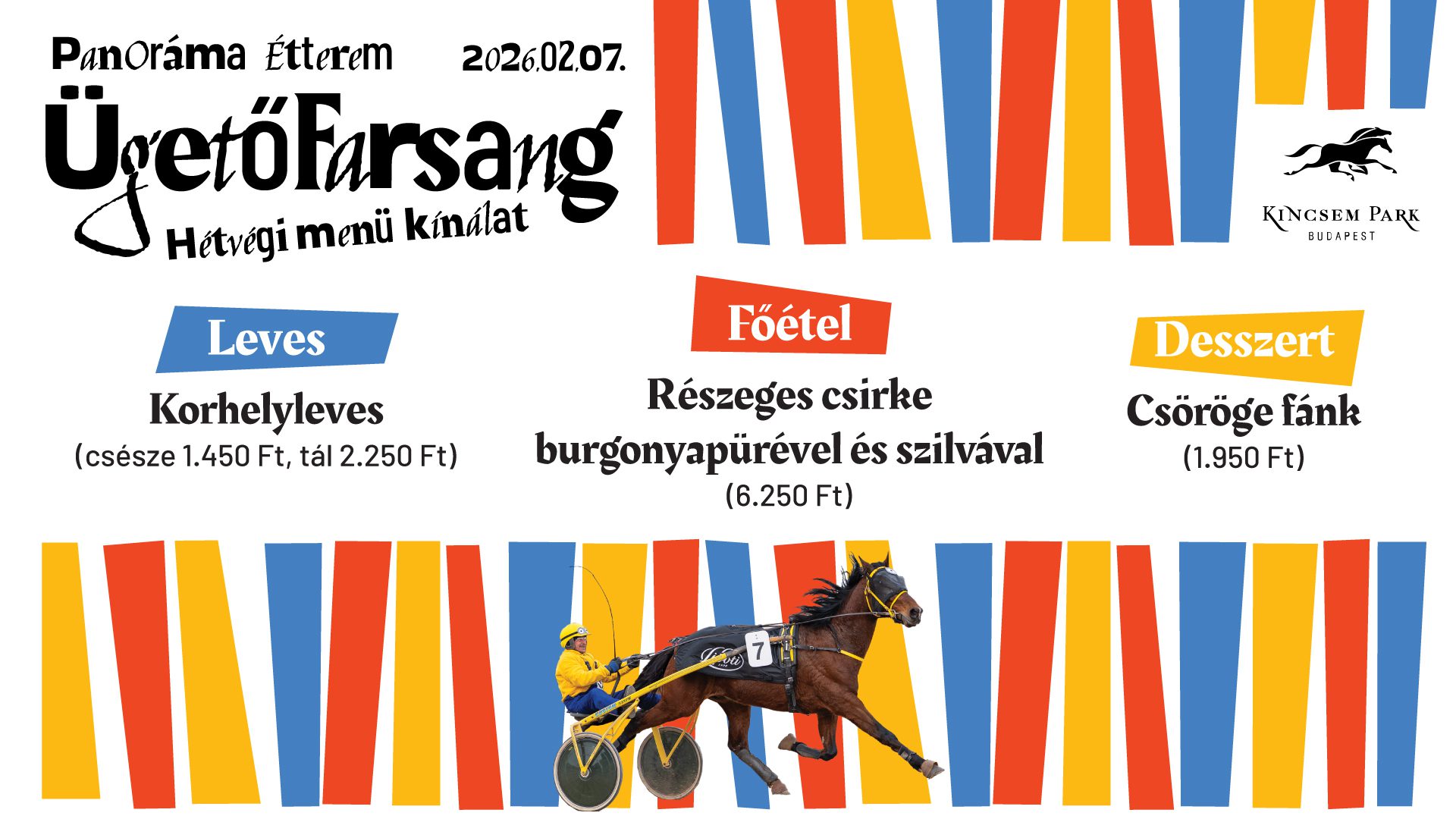 2026. február 7-én, szombaton újra benépesül a Kincsem Park, hiszen elérkezünk a farsangi időszakhoz. Kapd elő a legütősebb jelmezed, az első 500 jelmezben érkező látogató vendégünk lesz egy pohár forralt borra (18 év felett) vagy egy pohár teára. A tavalyi nagy sikerre való tekintettel a jelmezes hajtás sem marad el. Vajon idén ki győz? Tavaly Minyon-sikert ünnepelhettünk!