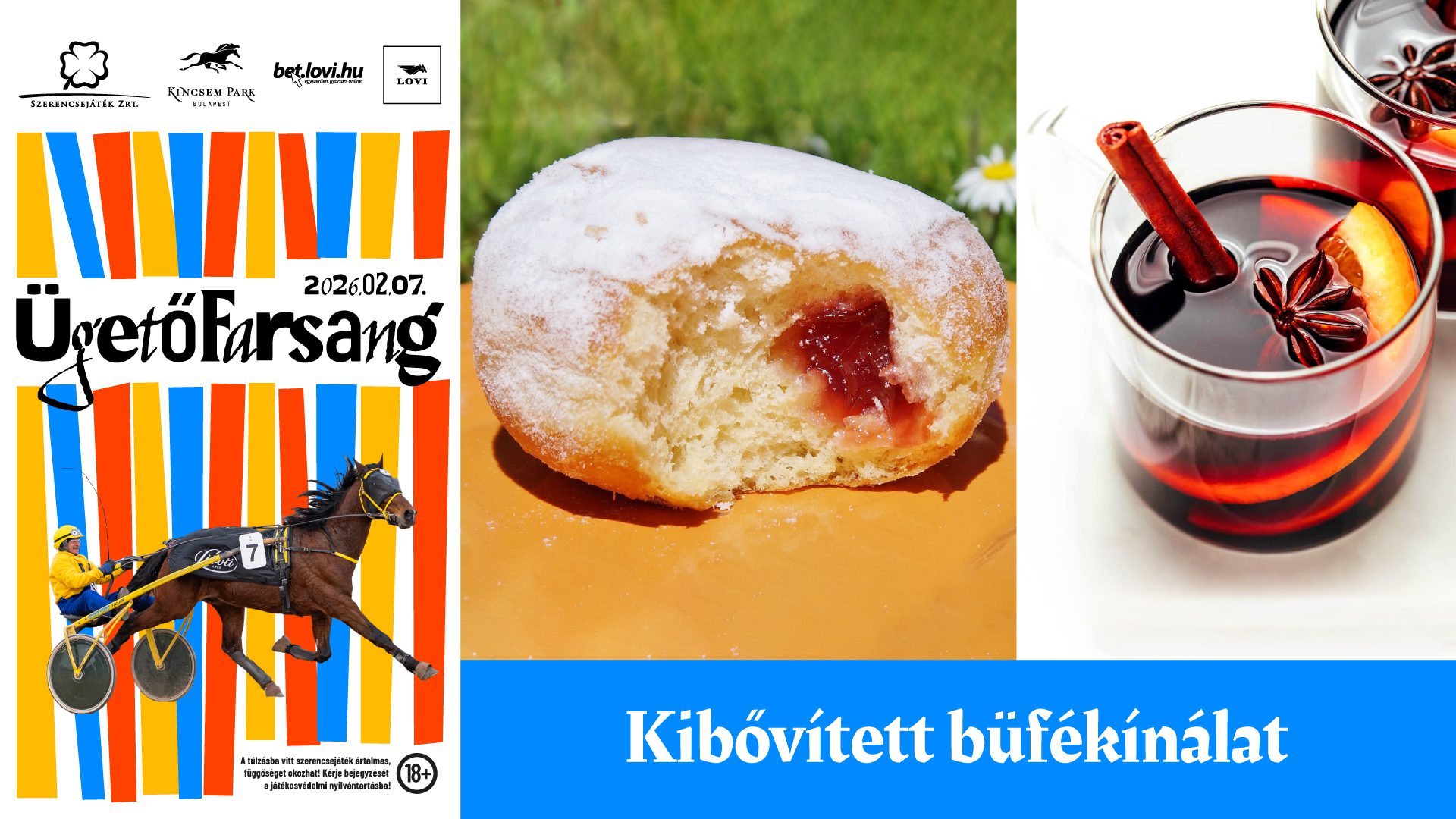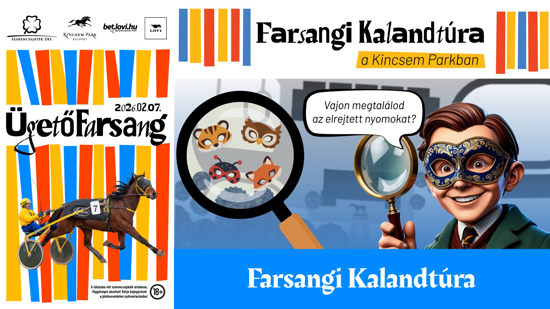 Vár még sztárfutam, sulkyhúzó verseny, kibővített étel és ital kínálat, az elmaradhatatlan farsangi fánk, jelmezverseny nagy értékű díjakkal, Kincsem Kincskereső Kaland és gyerekprogramok, de nyereményjátékban sem lesz hiány.